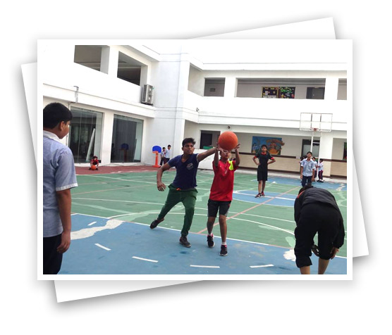 Basket Ball Court - Ensconced in the backyard of the school premises, covered from three sides giving it perfect location as good as being indoor, the court has international dimensions.